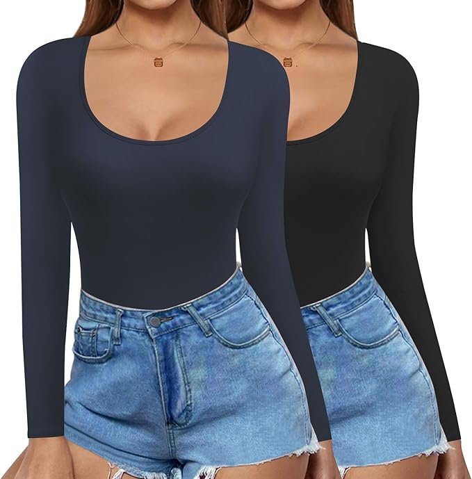 - Basic Stretch Fitted Tops for Women – Features a unique scoop neck design, slim fitted, long sleeve, solid colors, well made and beautiful fit. This basic tight shirts has versatile style makes everyone irresistible!